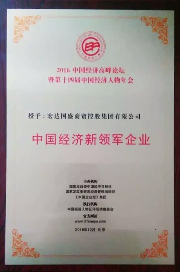 宏达国盛集团荣获“2016中国经济新领军企业”殊荣称号