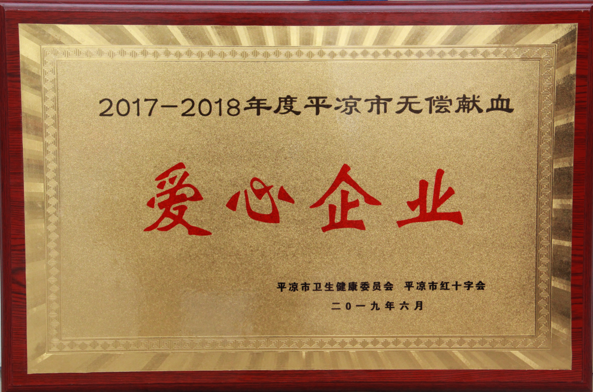 集团公司荣获“2017-2018年度无偿献血爱心企业”荣誉称号